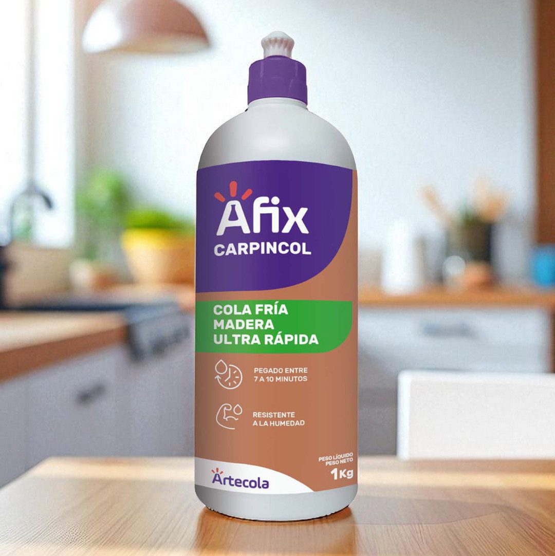 Afix Cola Fría Madera Ultra Rápida es un adhesivo base acuosa premium, desarrollado con las características de un pegamento tipo D3 (resistencia a la humedad e intemperie), de secado extra rápido, necesitando menos tiempo de prensado, y extra fuerte para uniones más firmes y durables en el tiempo.