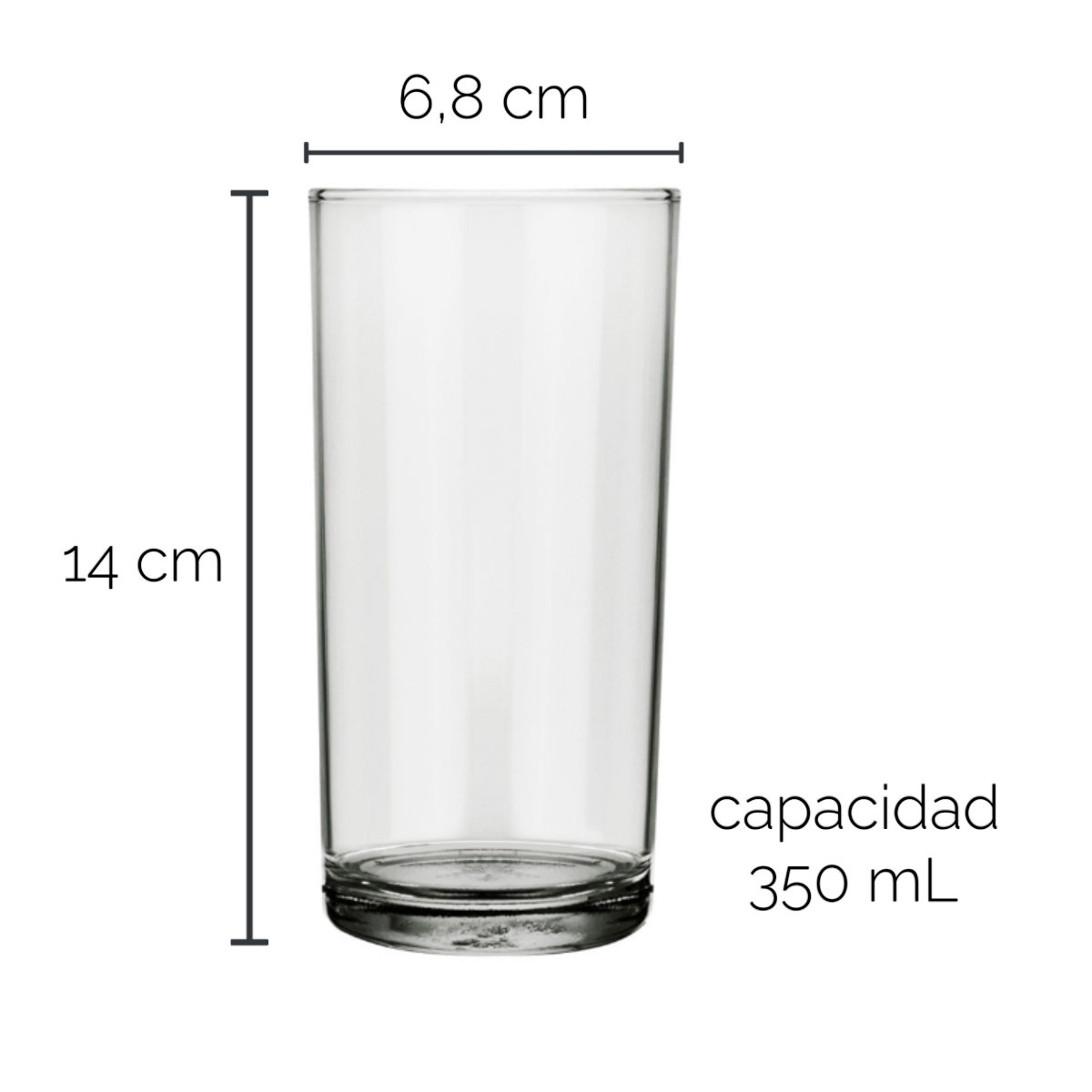 Vaso de vidrio de alta calidad de capacidad 350 mL, ideal para disfrutar de tus bebidas favoritas. Elegante y resistente para cualquier ocasión.