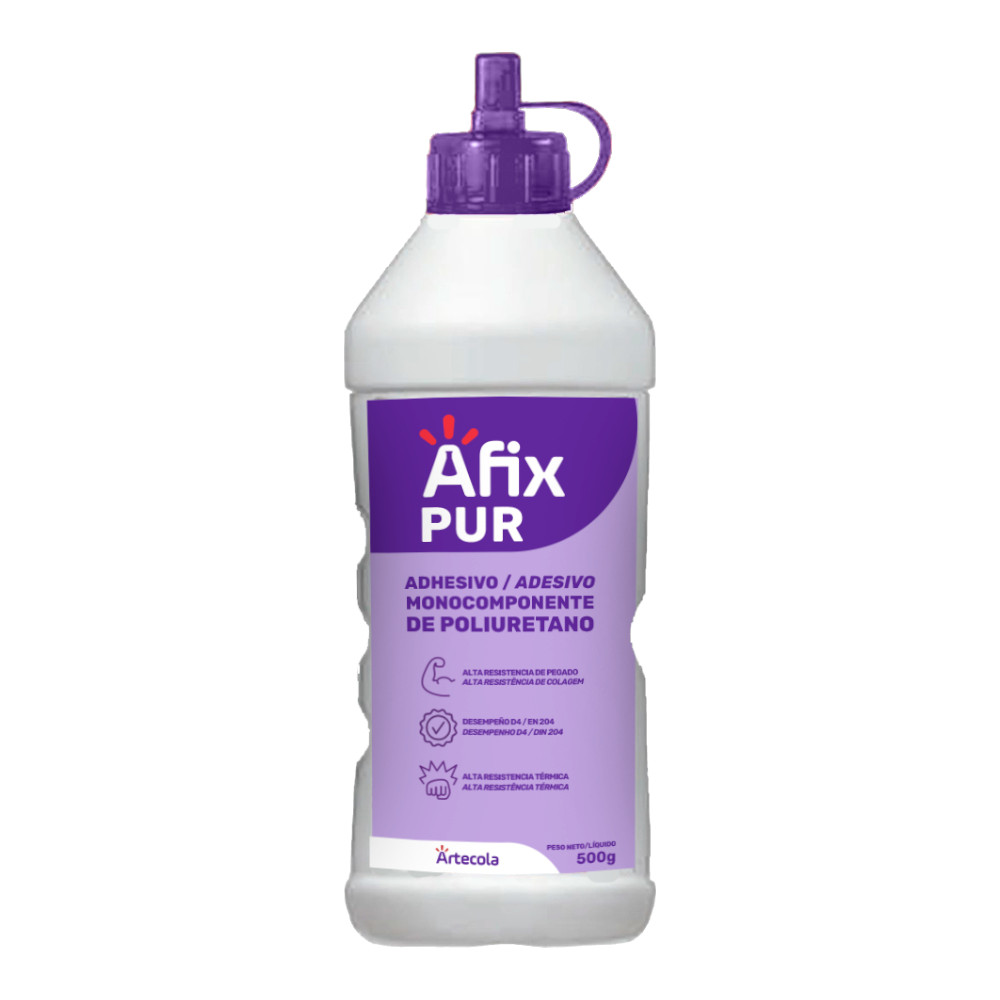 Adhesivo AFIX PUR es la solución para pegado de maderas, tanto en interior como en exterior. Resistente a la temperaturas altas y humedades. Es un adhesivo estructural a base de poliuretano. Ideal para pegado de zócalos, parquet, pisos de madera, puertas, ventanas, muebles, bancos, maderas en general y paneles de construcción.