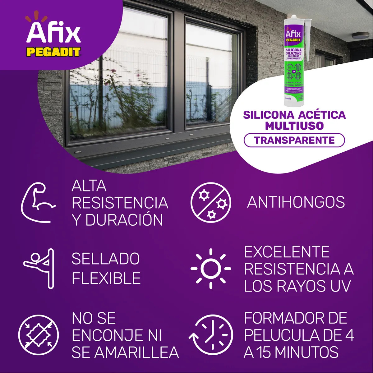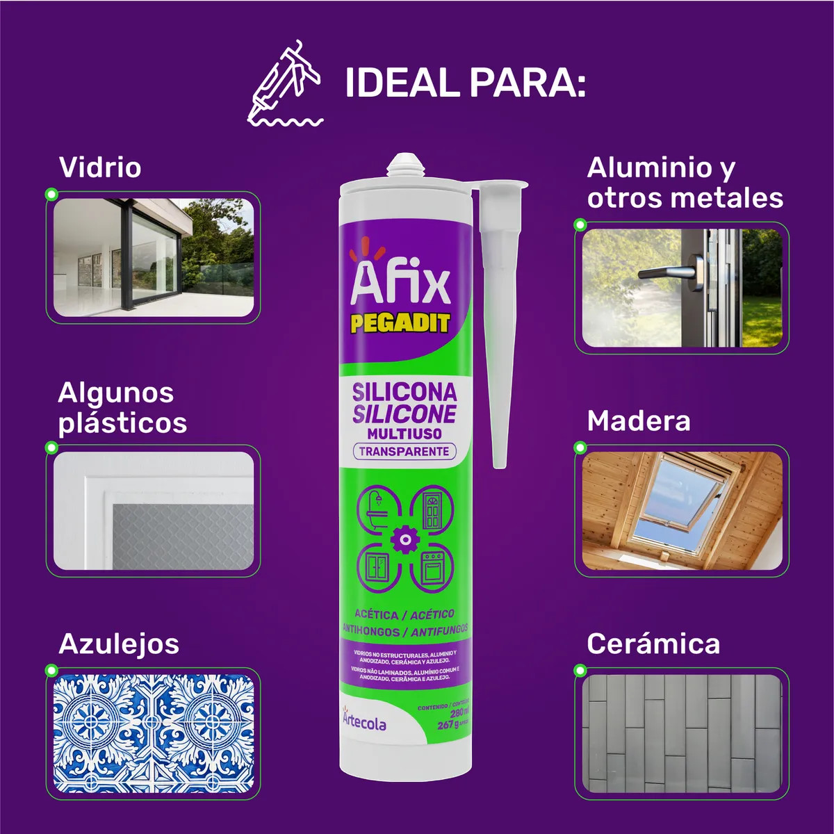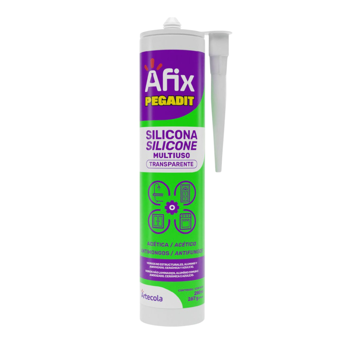 Silicona Ácida Multiuso Transparente Afix Pegadit 280 mL
