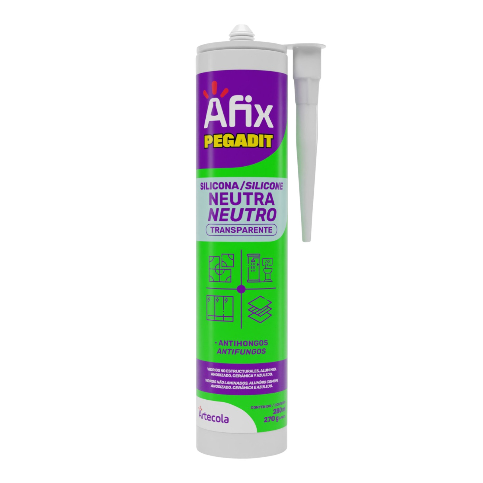 Silicona Neutra Transparente Afix Pegadit 280 mL – 12 unidades