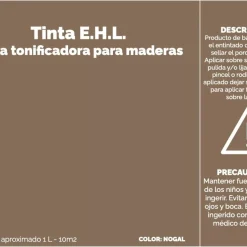 Tinta tonificadora para madera color nogal, rendimiento de 10 m2 por litro.